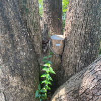ダニ室には入り口の大きいものと小さいものがあり、口の大きい方にはケボソナガヒシダニというダニを食べる捕食性のダニが住んでおり、口の小さい方にはクスノキから養分を吸収するフシダニの仲間のダニが住んでいる。