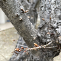 - コナラは葉柄がある。葉柄は無いか、ごく短いのがミズナラの特徴。