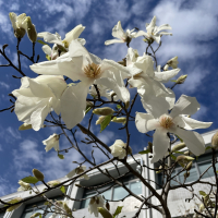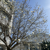 葉が開く前に、直径7~10cmの香りのよい白い花を咲かせる。花の下に小型の葉がある。