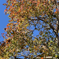 葉は三角状広卵形で先端は尾状、秋に美しく紅葉するので街路樹や公園に植えられることもある。