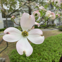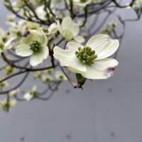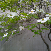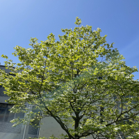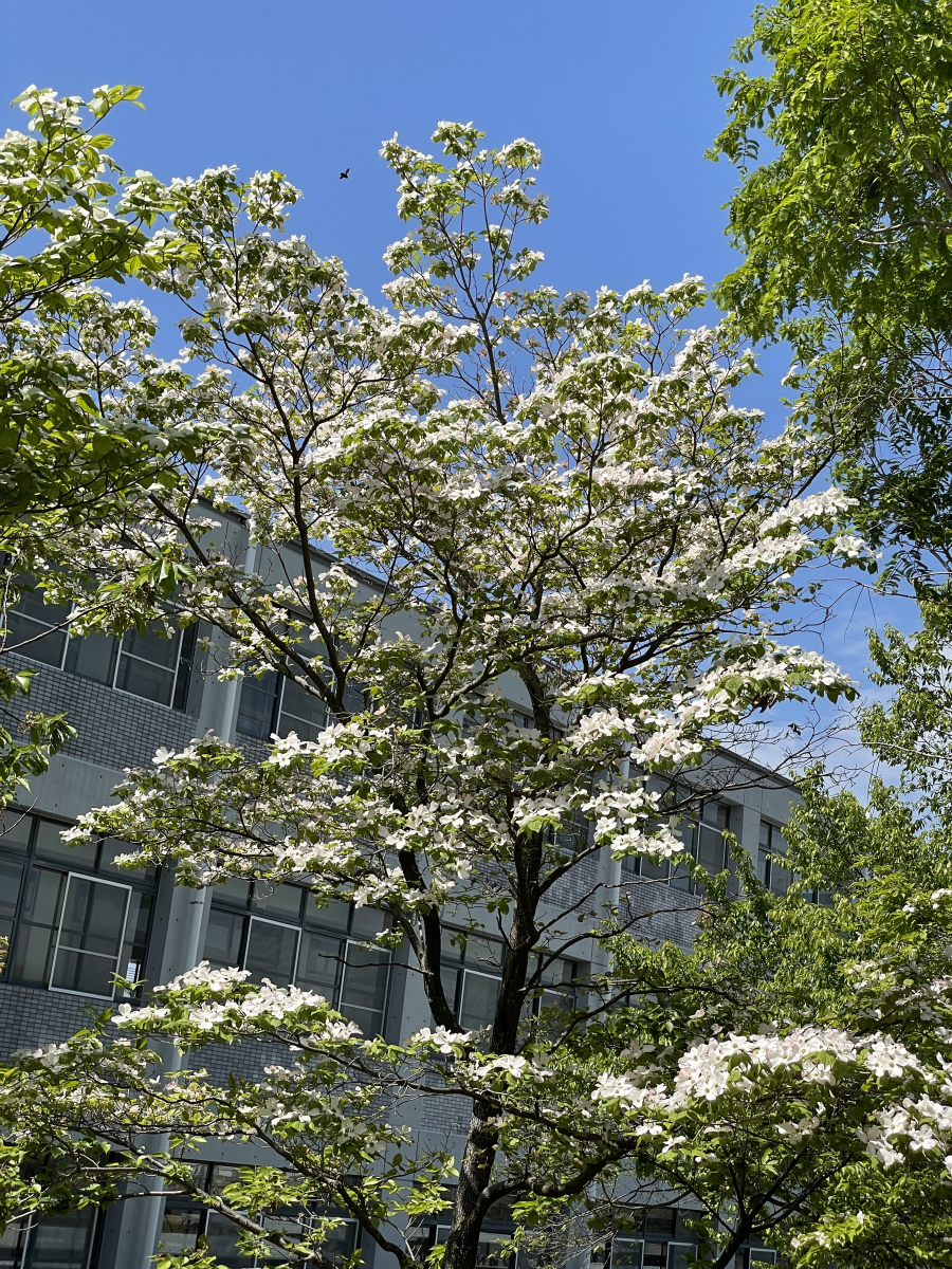 - サクラが咲き終わった頃から咲き出すのがハナミズキで、ヤマボウシは少し開花が遅く、5月〜7月。ヤマボウシは花の時期に葉が出ている。
