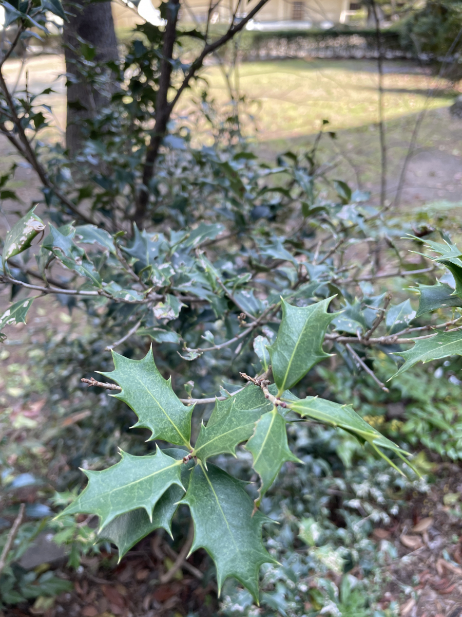葉の縁に先が鋭い棘になった鋭鋸歯がある。