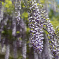 花は花房が長くしだれて上から順に咲いていき、長さは20~80cmになる。