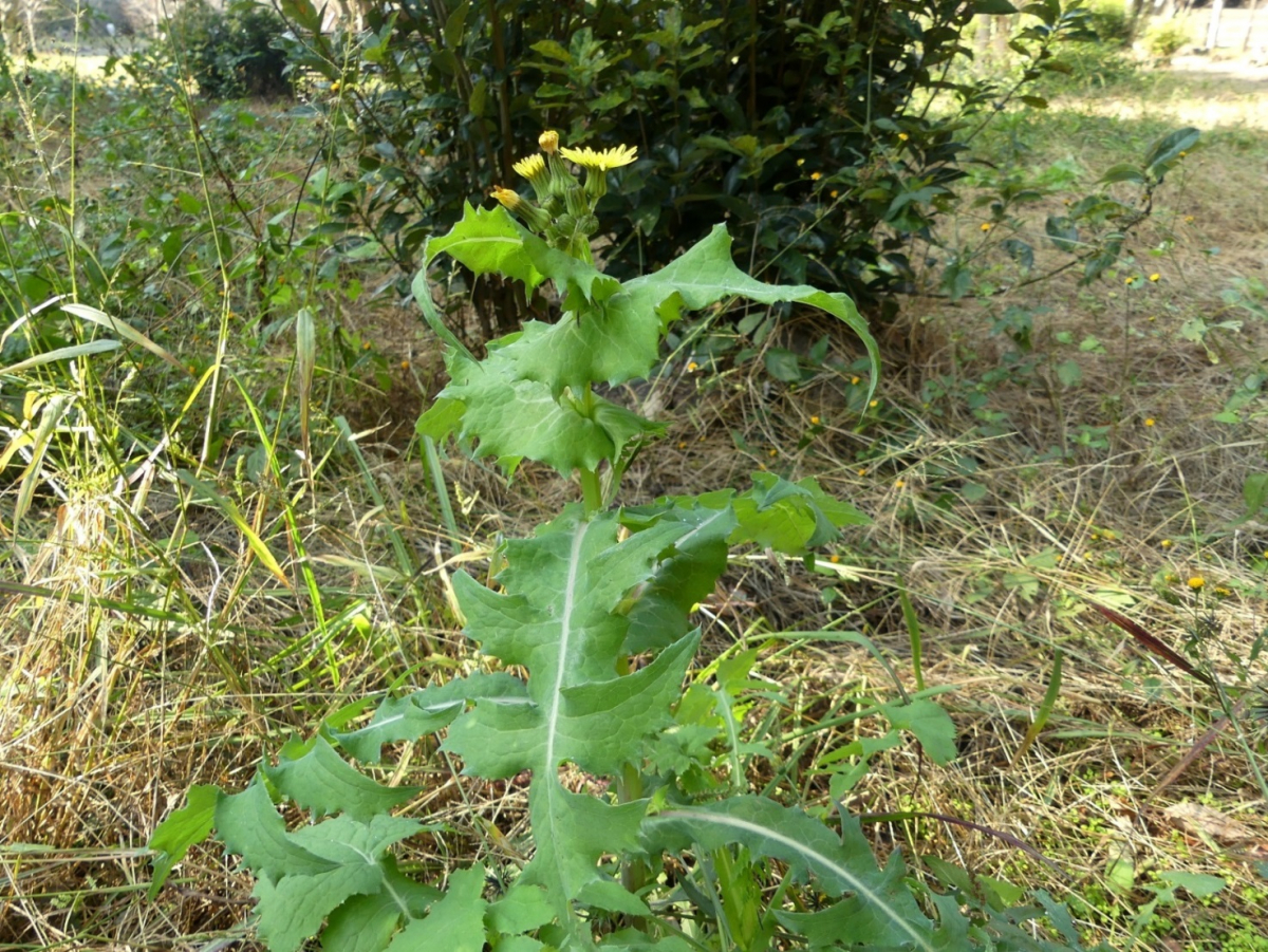 ノゲシとオニノゲシの雑種です。千畳芝北側の園路沿いに生えていました。