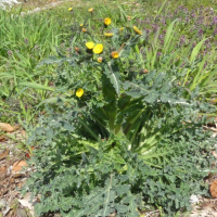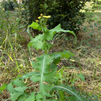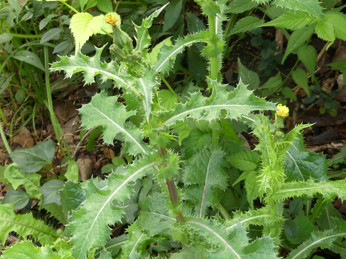 ノゲシとオニノゲシの雑種とされています。葉にトゲがありますが、手で触ってもオニノゲシのように痛くありません。「花と緑のまちづくりセンター」南にあるトイレの北側に生えていました。