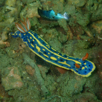 このウミウシは、学名より「青いドレスを着たウミウシ」と呼ばれることもあります。